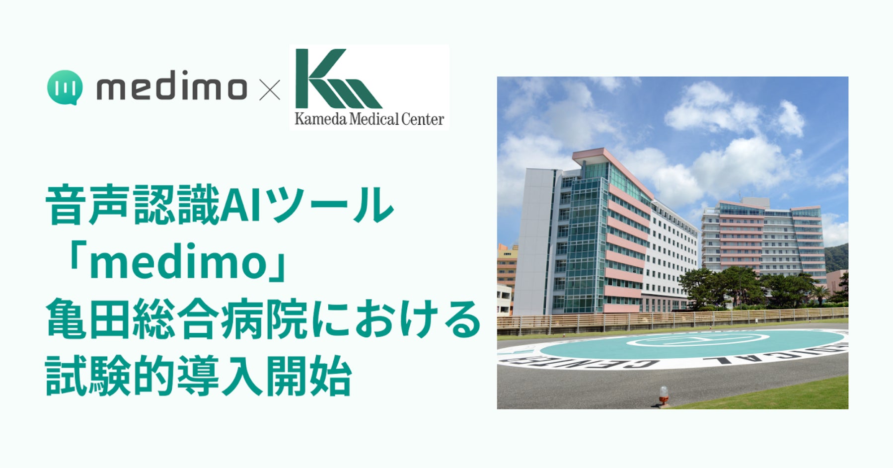 音声認識AIツール「medimo」、亀田総合病院における試験的導入開始