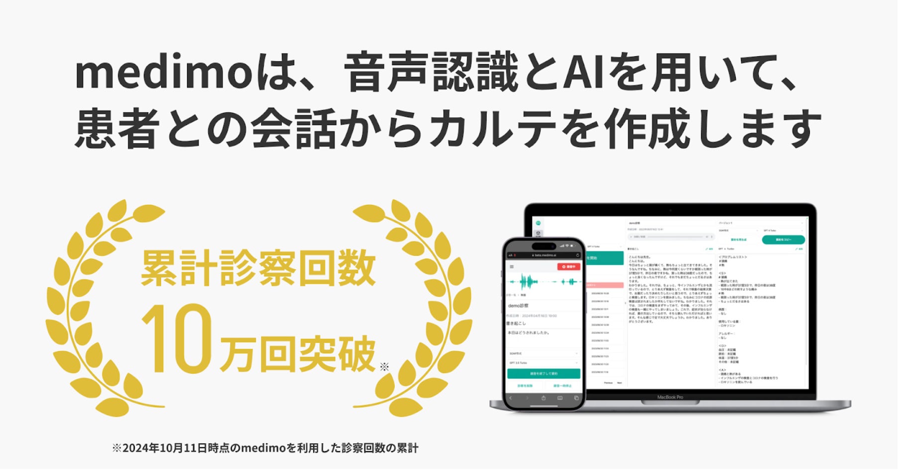 現在、「medimo」は約150以上の医療機関に導入され、カルテ業務の作成時間を大幅に効率化しています。特に、総合内科の外来診療では不定愁訴や未診断の患者が多く、病歴聴取に時間を要することが多いため、「medimo」による業務効率化の効果が大きく期待されています。