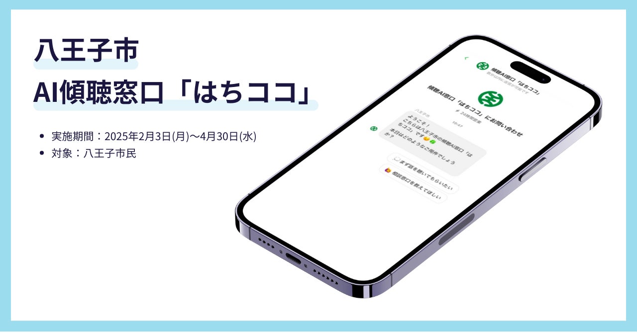 傾聴AIアルゴリズムを開発する 株式会社ZIAI(所在地:東京都渋谷区 / 代表:櫻井 昌佳 / 以下、ZIAI)は、八王子市における孤独・孤立対策の一つとして、生成AIを活用して生活の困りごとやお悩みをオンラインで傾聴し、必要に応じて福祉の窓口を案内する、AI傾聴窓口「はちココ」を試行的に開設することをお知らせいたします。