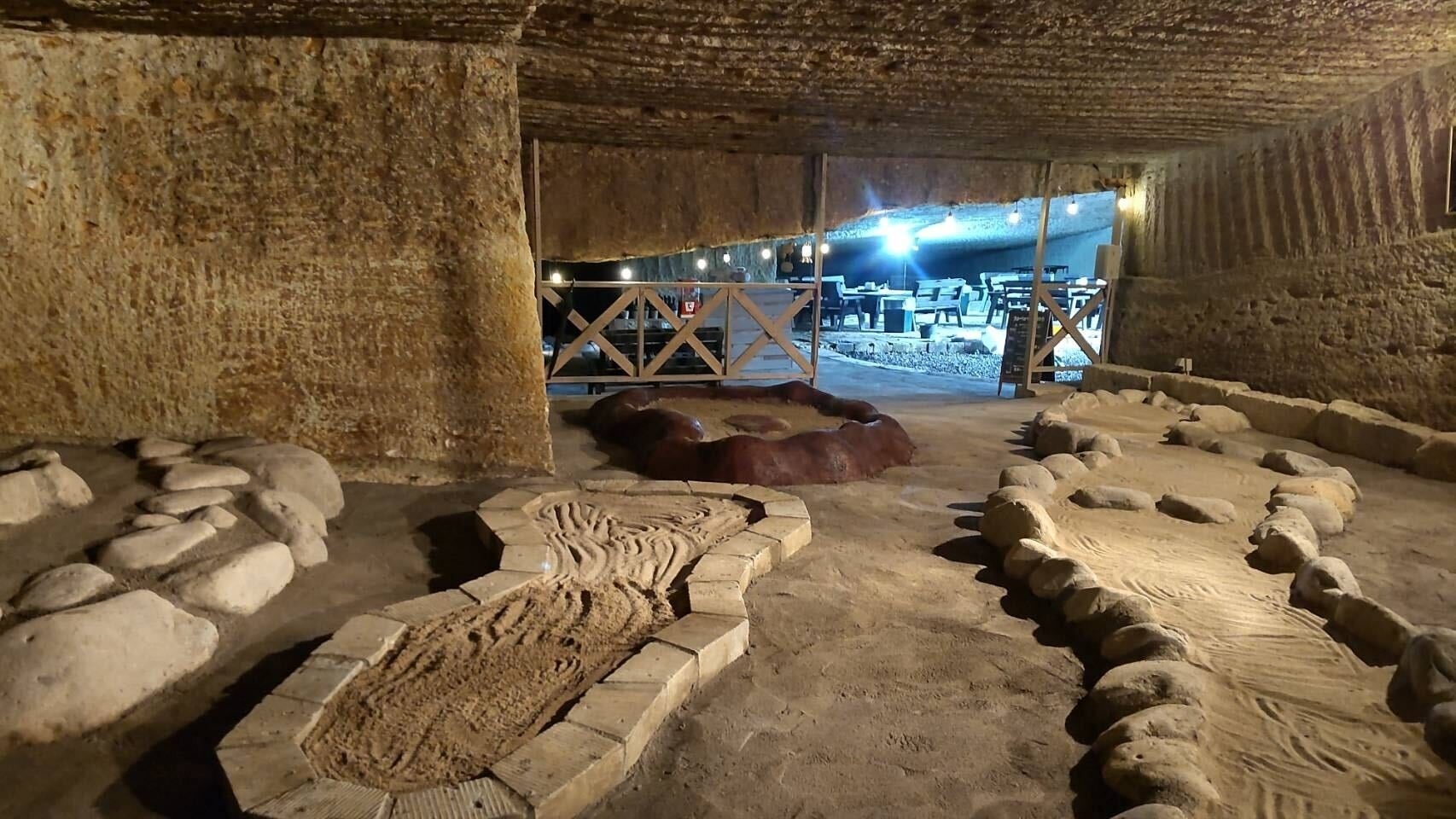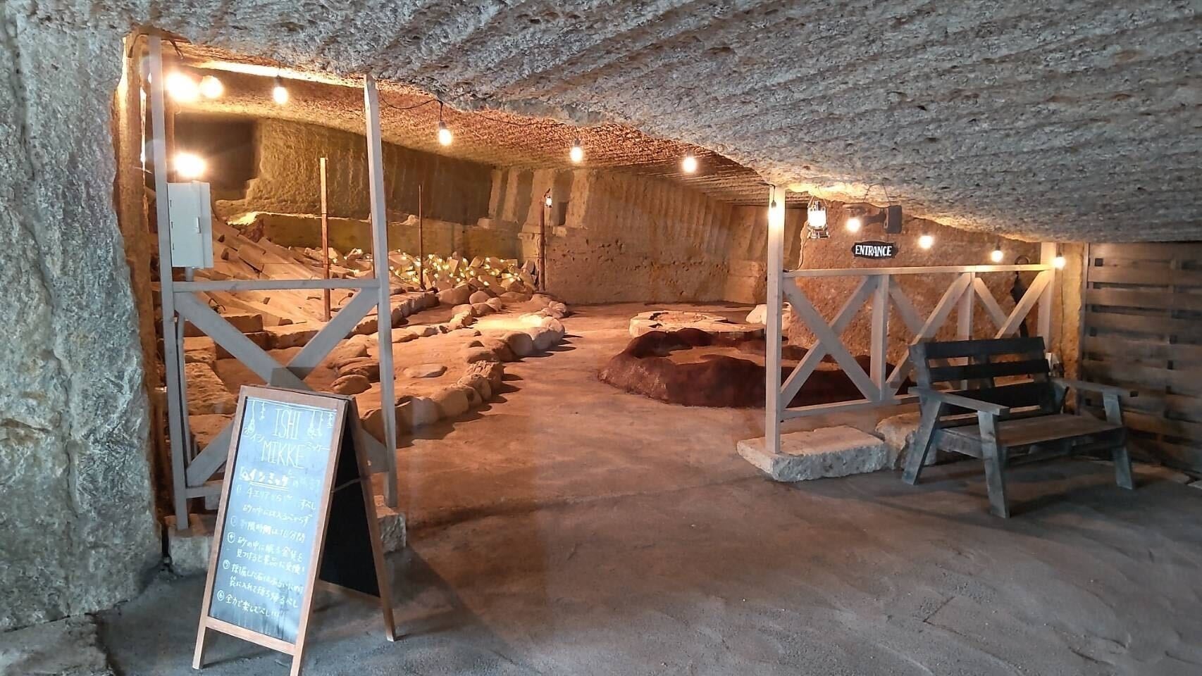 薄暗い洞窟を照らすオレンジの灯り。非日常空間で気分はまさに探検家!採石場に隠れている「カブルメダル」を見つけたらカブルオリジナルグッズがもらえます!