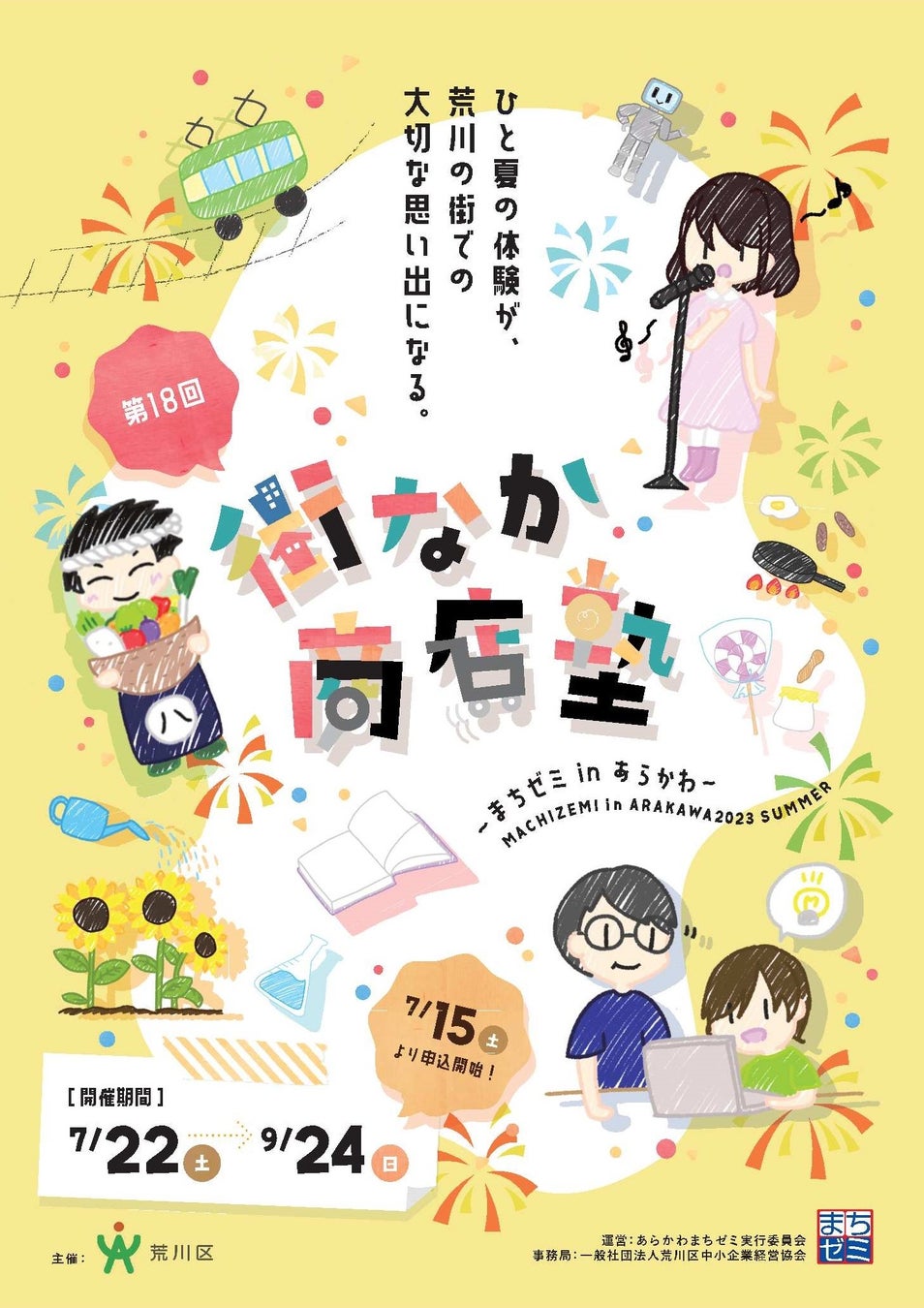 荒川区では、7月22日(土曜)から9月24日(日曜)まで、第18回 街なか商店塾 ~まちゼミinあらかわ~を開催します。