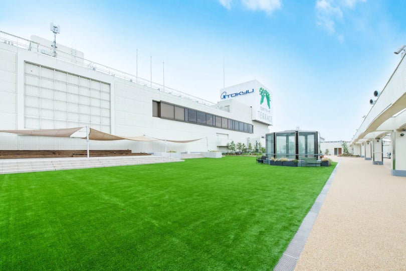 たまプラーザ テラス ノースプラザ(東急百貨店たまプラーザ店)3階屋上にある庭園は、2022年10月に「COMMON FIELD」としてリニューアルオープンしました。約3,000㎡の広々とした庭園は、ゆったり過ごせる芝生エリア、お子さまも楽しめるキッズエリア、自然豊かな植栽で森の小道を連想させるエリアにより構成され、庭園内にはカフェ店舗が併設。たまプラーザの街のさらなる活性化に貢献し、新たなにぎわいや憩いの空間を提供します。