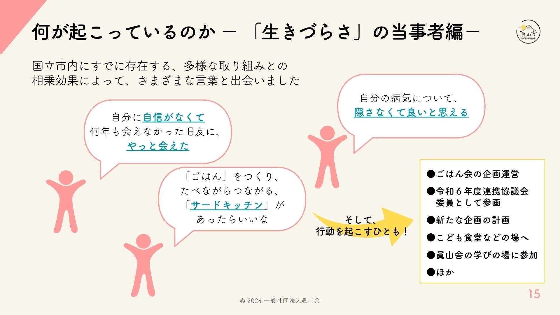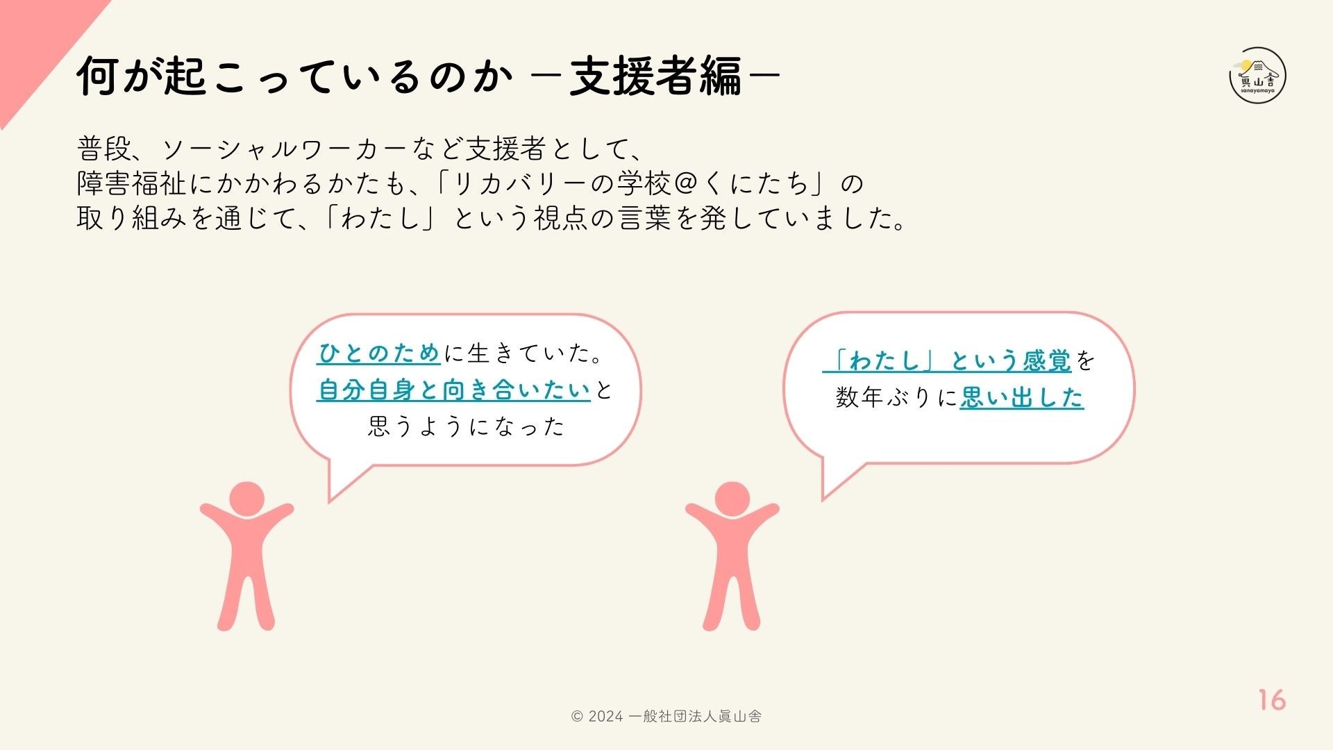 (注)上記画像は「「リカバリーの学校@くにたち中間成果報告会」-〈生きづらさ〉からはじまる対話と学び-」の登壇資料から抜粋しています。資料全体は、微修正の後、「リカバリーの学校@くにたち」特設サイトに掲載します。
