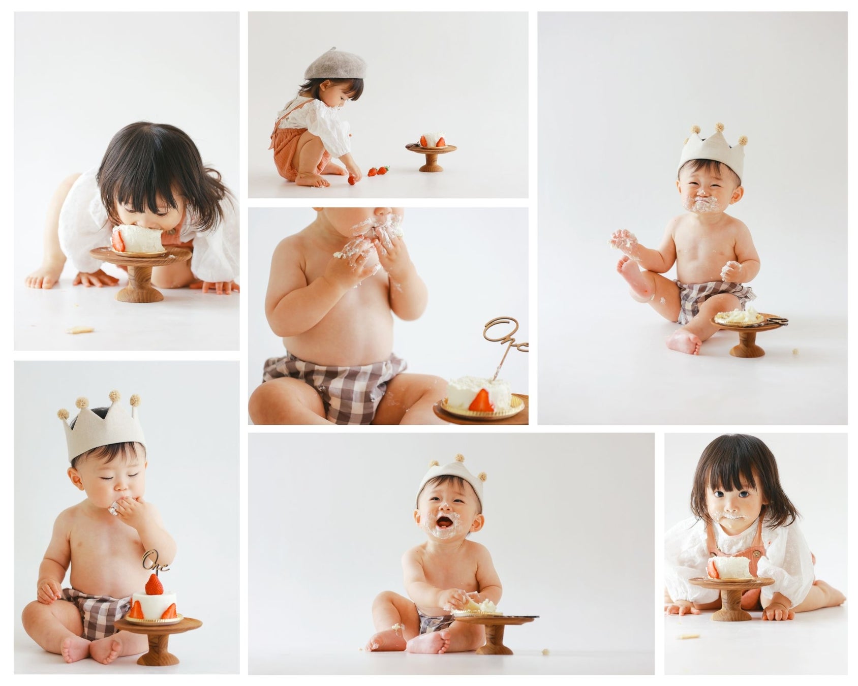 おうちではなかなか出来ない、1歳ならではのスマッシュケーキ撮影は大人気でお勧めです。