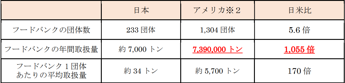 【日米のフードバンクの比較】
