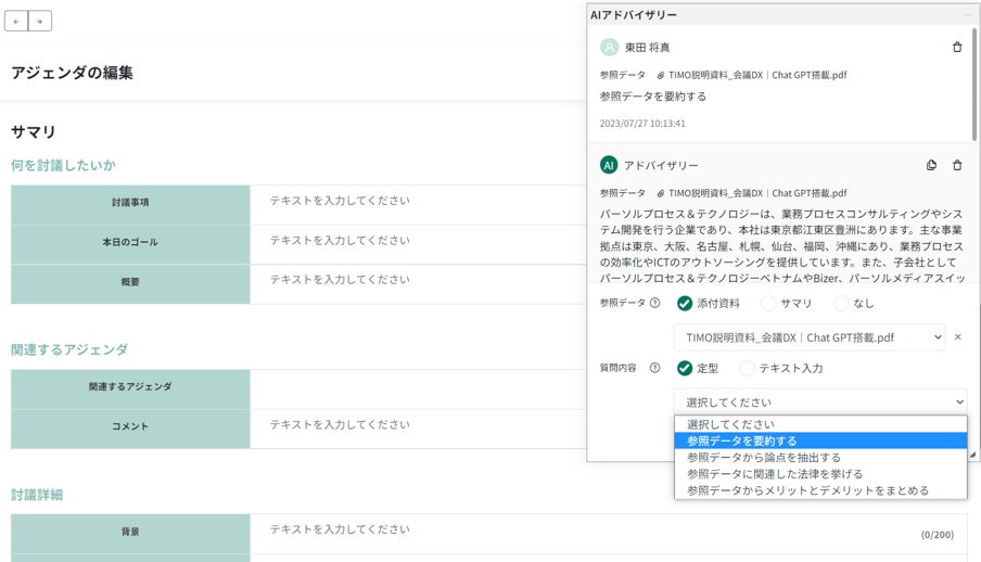 ~ChatGPTを活用して自動でサマリーを作成、同時にアジェンダの精査も可能に~