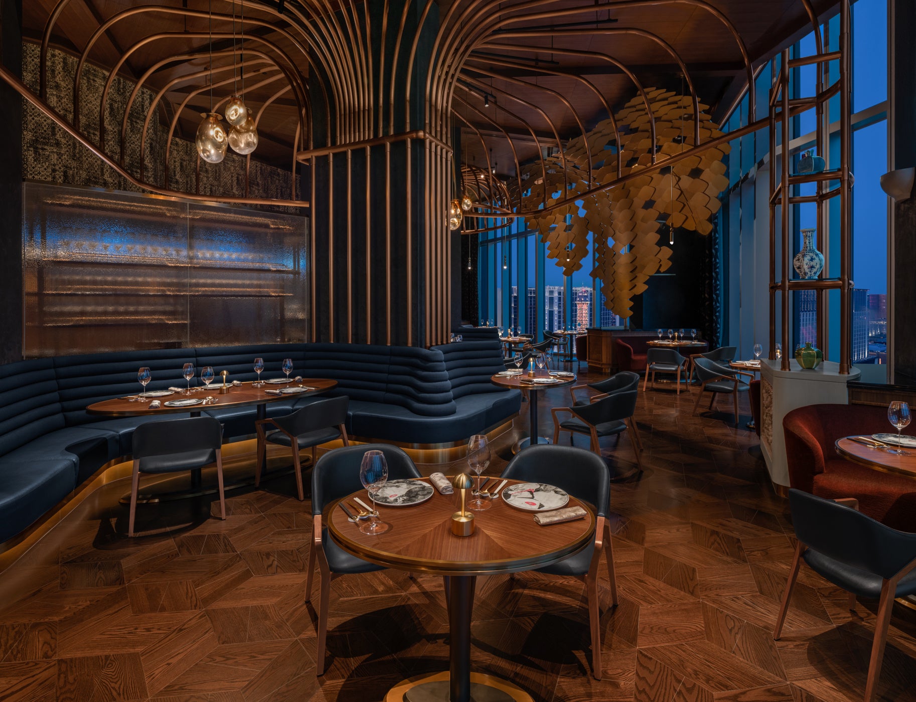 世界的に有名なザハ・ハディド・アーキテクツによって設計されたW マカオ スタジオ・シティは1950年代のハリウッドの華やかさからインスピレーションを得ており、大胆な幾何学模様を取り入れ、マカオ独特の東西文化の融合、歴史、自然美を現代的に表現し、細部までこだわり抜かれています。ウェルカムデスクには青と白の波が渦巻き、壁面には美しい海辺が描かれ、鏡張りの天井は海中の見事な光景が広がります。