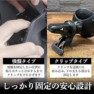 超強力ゲル+真空吸盤で車種を選ばずにガッチリ吸着。ゲルは汚れても水洗いで吸着力が一瞬で復活します。