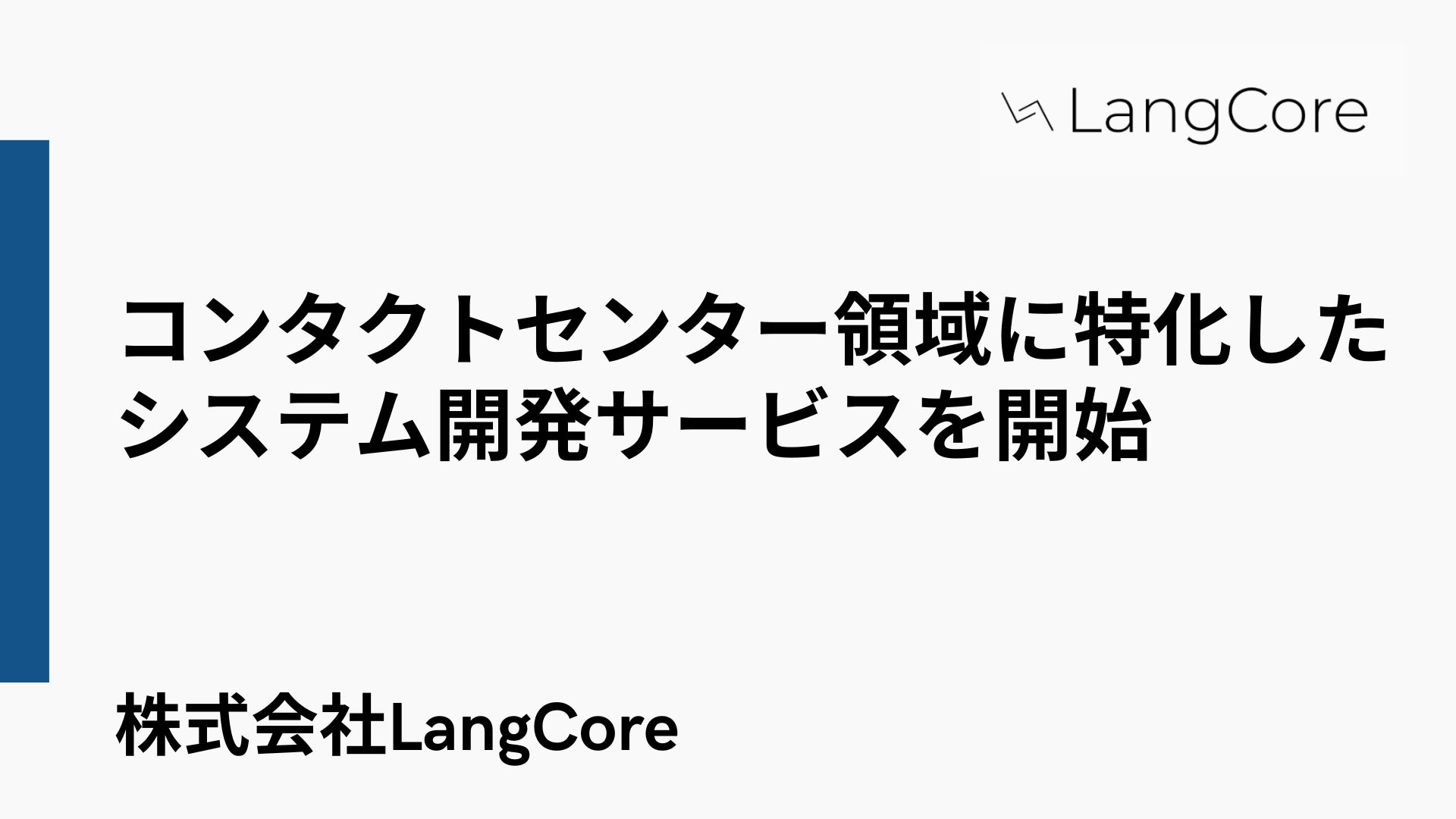 株式会社LangCore(本社:東京都江東区、代表取締役:高木陽介/北原麦郎、以下「当社」)は、当社が提供する生成AIを活用したコンタクトセンターに特化した開発パッケージの提供を開始をお知らせします。
