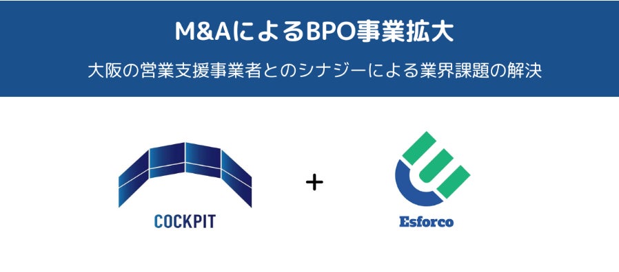 CockPitはBPO事業の成長戦略の一つとしてEsforcoのコンサルティング営業事業を買収し、事業拡大を加速させてまいります。