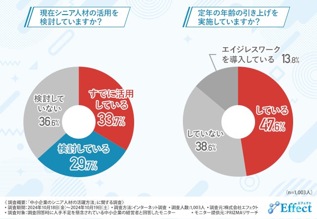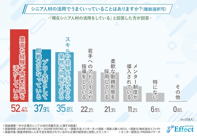 株式会社エフェクト(所在地:東京都中央区、代表取締役:石井 住枝)は、人手不足を懸念されている中小企業の経営者を対象に、「中小企業のシニア人材の活躍方法」に関する調査を実施しました。