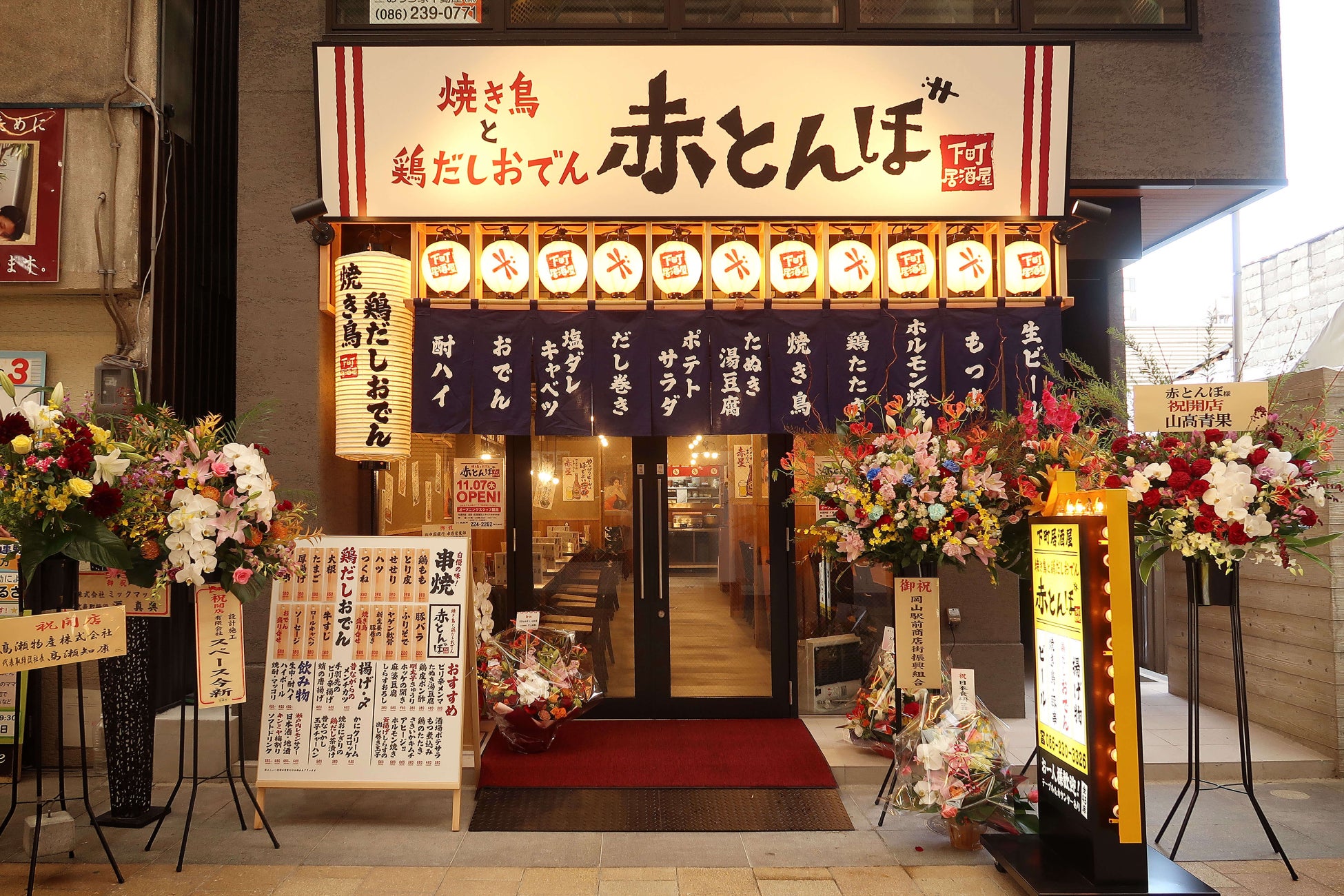 2024年11月7日(木)、岡山駅前に新たな居酒屋「焼き鳥と鶏だしおでん 赤とんぼ」がグランドオープンしました。