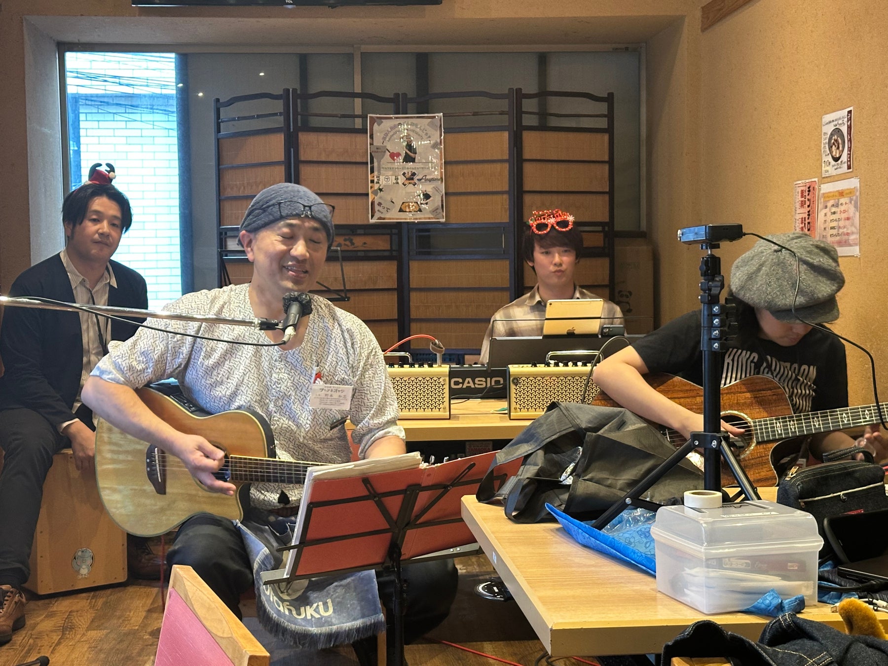 イベントでは、生徒さんによるギター演奏やピアノの弾き語り、さらに先生の演奏に合わせての生セッションが行われ、アットホームでありながら本格的なライブが展開されました。