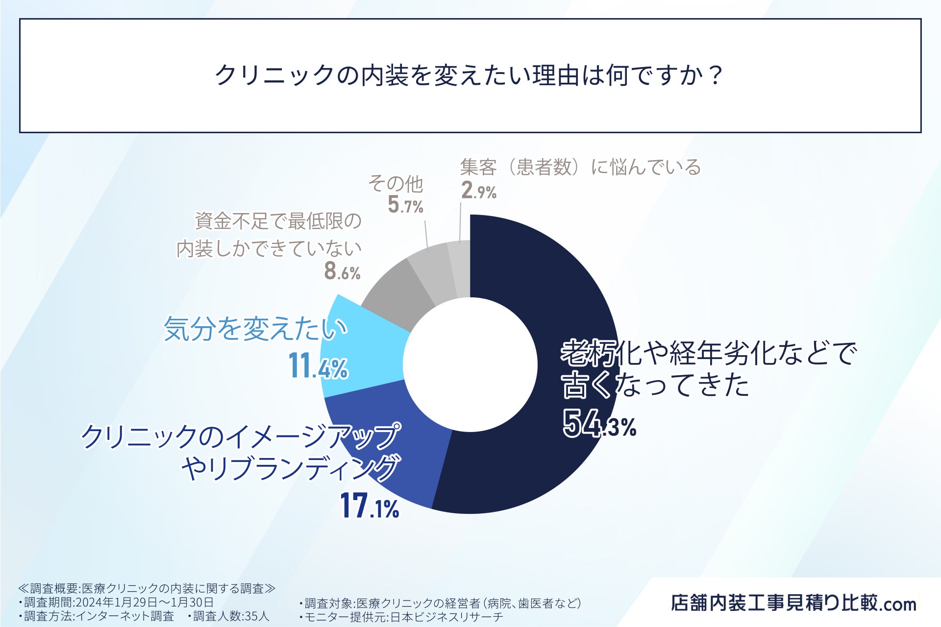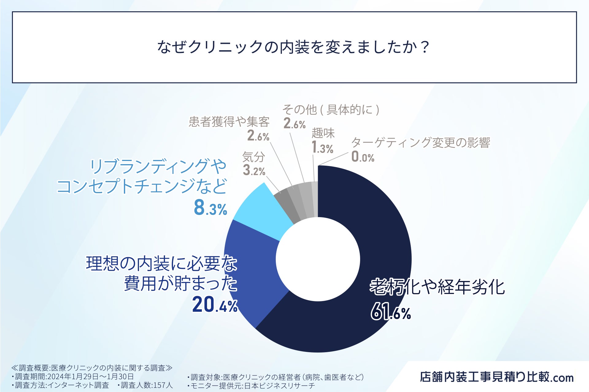 今回の調査により、医療クリニック経営者の約60%が内装を変えていることが明らかになりました。