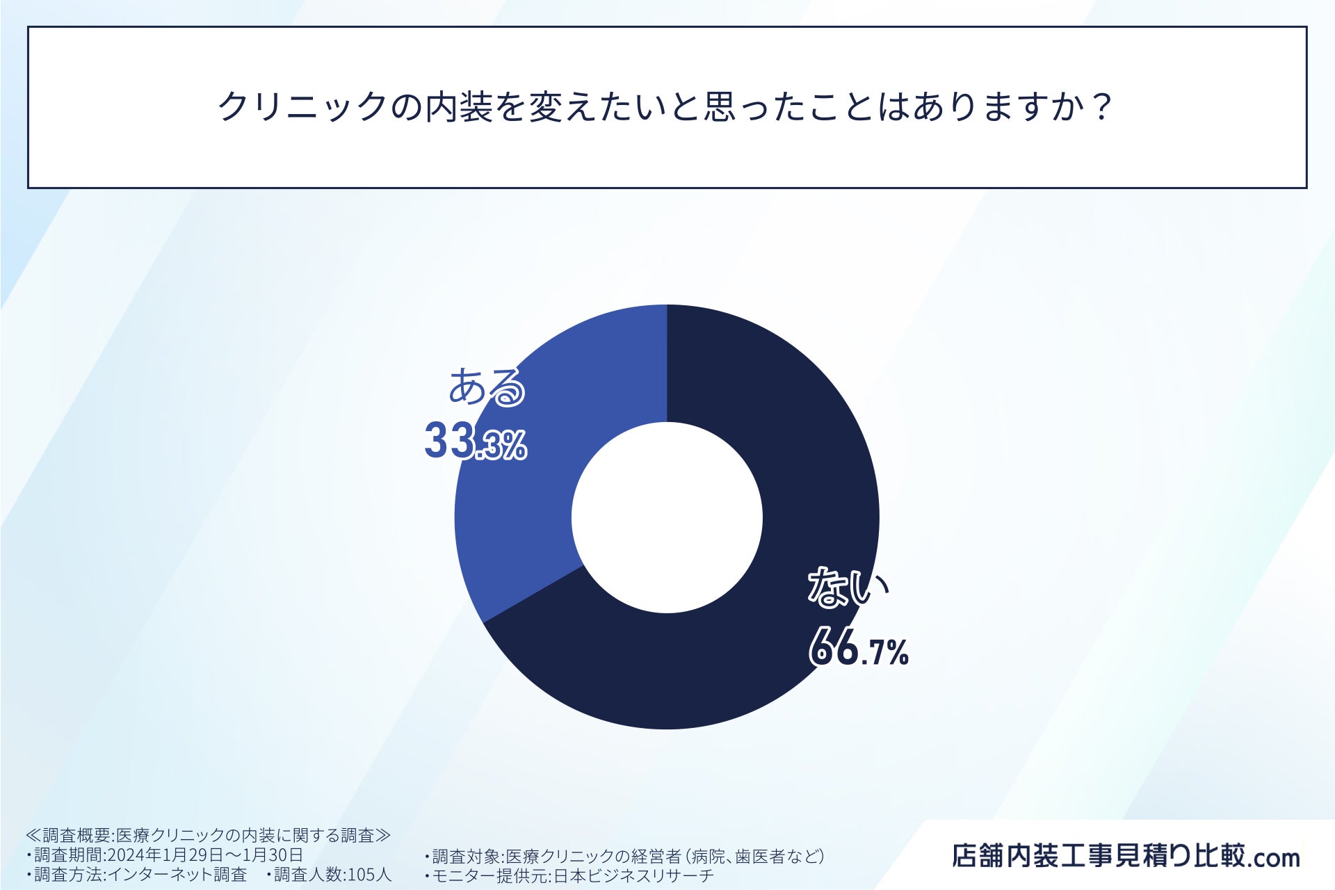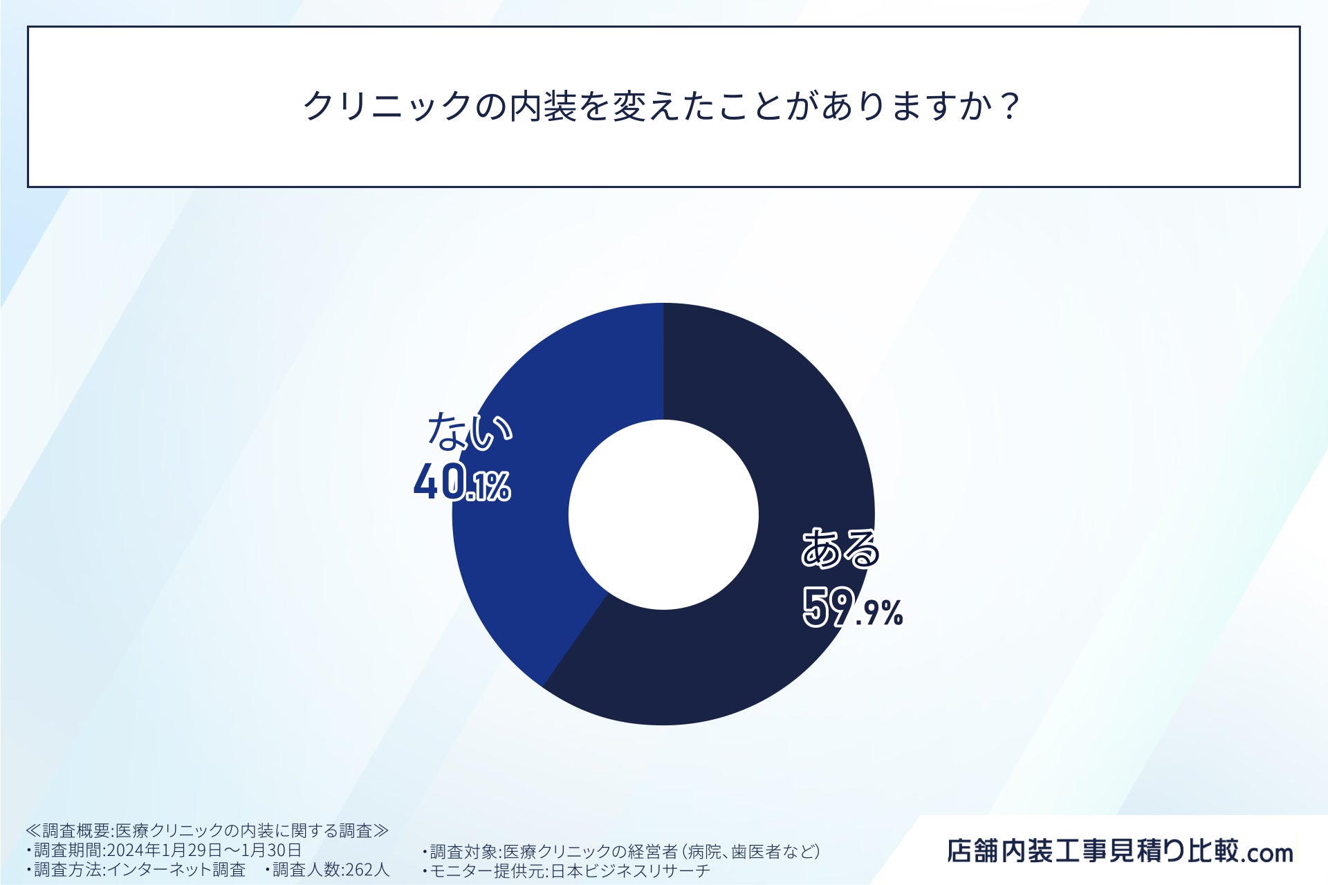 まず、調査対象となる医療クリニック経営者にクリニックの内装を変えたことがあるか、回答してもらいました。