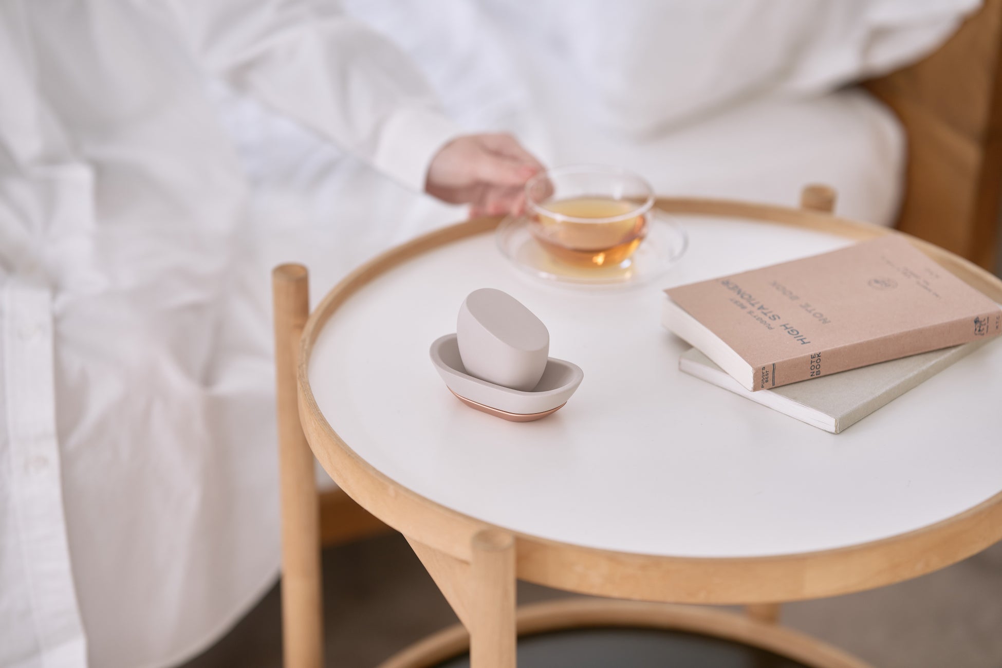 従来のアロマストーンが抱えていた「香りがあまり広がらない」という課題に対して、石らしい重みや自然物の風合いを活かし、"擦る"ことで香りを広げることが可能です。擦るという所作と香りの広がりを感じて頂くことで、日々の喧騒から離れ、癒しの空間を作ります。