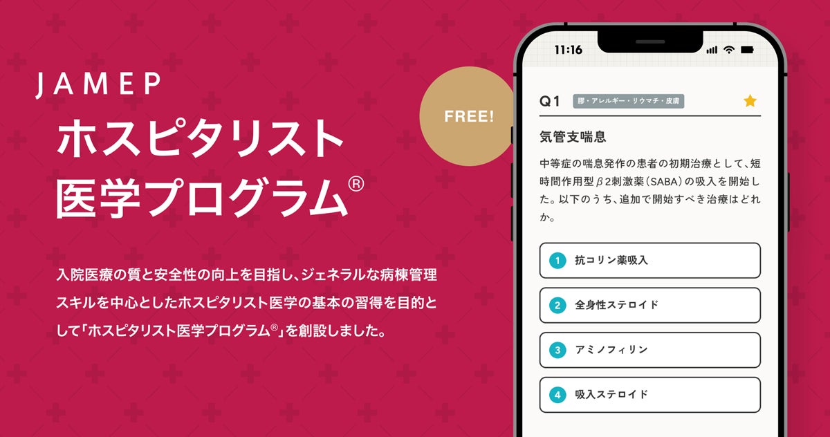 LINEを使った「ホスピタリスト医学プログラム®︎ 」をJAMEPと共同開発_入院医療に必要な知識とスキルを確認する認定試験も予定