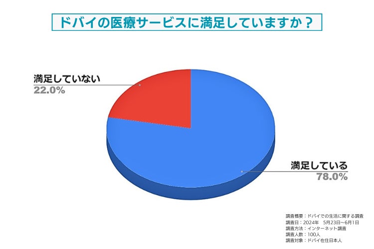 弊社が運営する『ドバイ総合研究所』は、ドバイ在住の日本人を対象に「ドバイの医療サービスに対する満足度」についてアンケート調査を実施しました。結果は以下の通りです。
