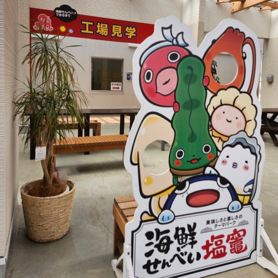 海鮮せんべい塩竈は、「美味しさと楽しさのテーマパーク」をコンセプトに、約20種類以上の海鮮せんべいを取りそろえる観光型店舗です。