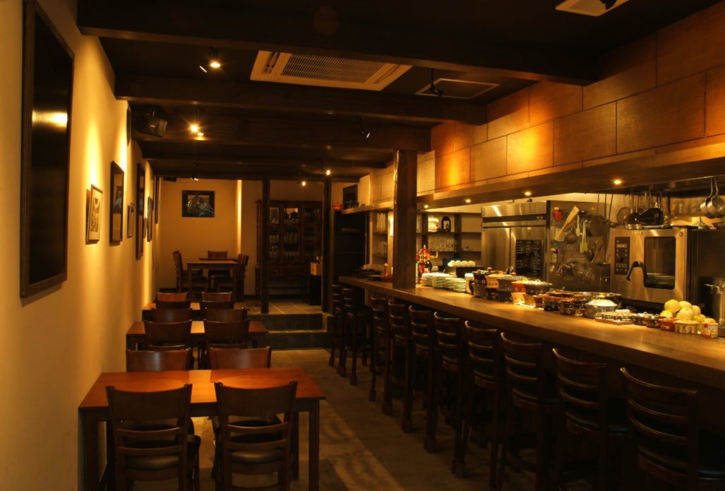 店内は隣接するテーブルで和気あいあいとしたトラディショナルなビストロの雰囲気でラタトゥイユやリードヴォー、さらに牛ステーキの赤ワインバター添えとポムフリットなど…経験と技術が光る古き良き時代のフランス料理を楽しめる。