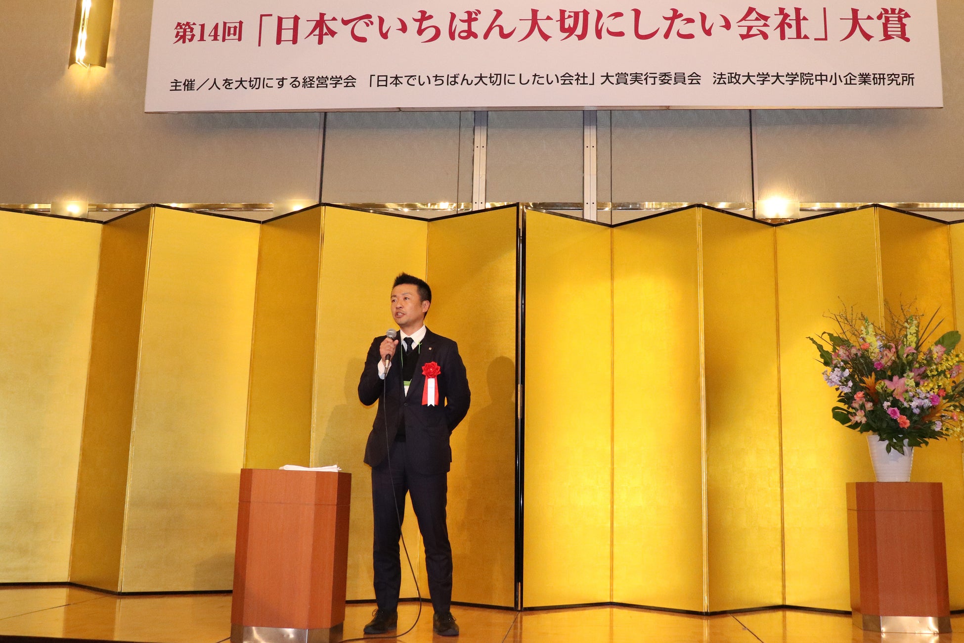 この賞は、「日本でいちばん大切にしたい会社」大賞実行委員会(清成忠男実行委員長)、人を大切にする経営学会®(坂本光司会長)、法政大学大学院中小企業研究所(井上善海所長)が主催しているもので、「人を幸せにする経営」を実践している会社を1社でも増やしたいという思いでスタートした顕彰です。