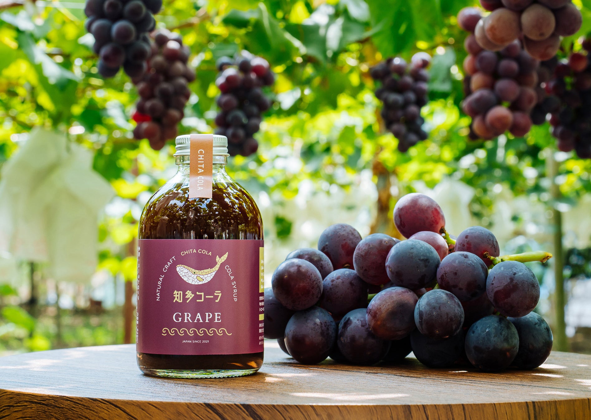 知多コーラはこれまで、知多半島産のみかん、いちご、豆みそなど、地元の豊かな食材を活かしたクラフトコーラを展開してきました。今回、新たに「巨峰」をテーマに据えた背景には、知多半島のぶどう栽培へのリスペクトと、その香り・甘みをクラフトコーラという形で表現したいという強い想いがあります。