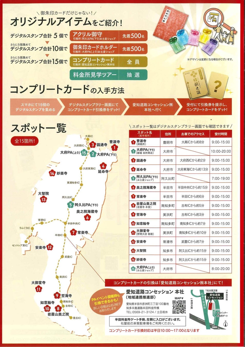 10月1日(火)より、愛知道路コンセッション株式会社(本社:愛知県半田市、通称:ARC(エーアールシー))では、有料道路の利用促進と知多半島の魅力発信を目的に、知多半島の観光名所「知多四国霊場八十八か所」内の12寺と、パーキングエリア3ヶ所の全15箇所を巡る「ARC御朱印ラリー」を開催します。