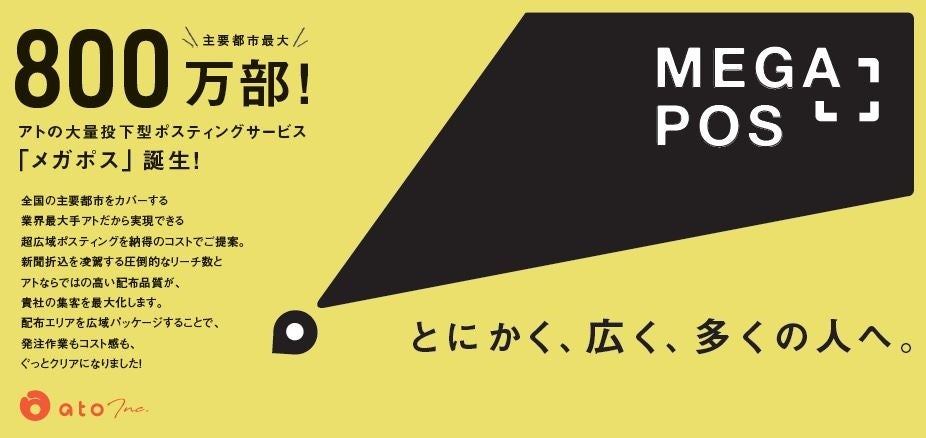 ポスティング事業を行う株式会社アト(本社:東京都千代田区、代表取締役CEO:奈須田洋平 以下、アト)は、新サービス「メガポス」を本格開始いたしました。