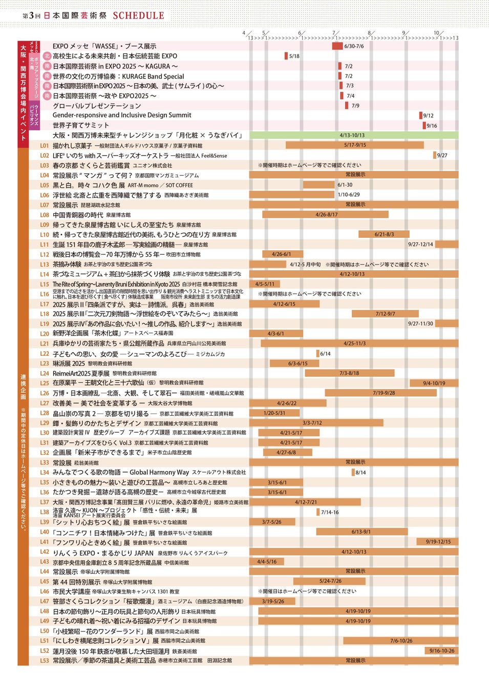 そして、大阪・関西万博の会期の4月13日~10月13日の6ヵ月間、京都~大阪~関西~全国の美術館、博物館、工房、大学、企業ショールーム等に連携いただき、「連携企画」を開催いたします。