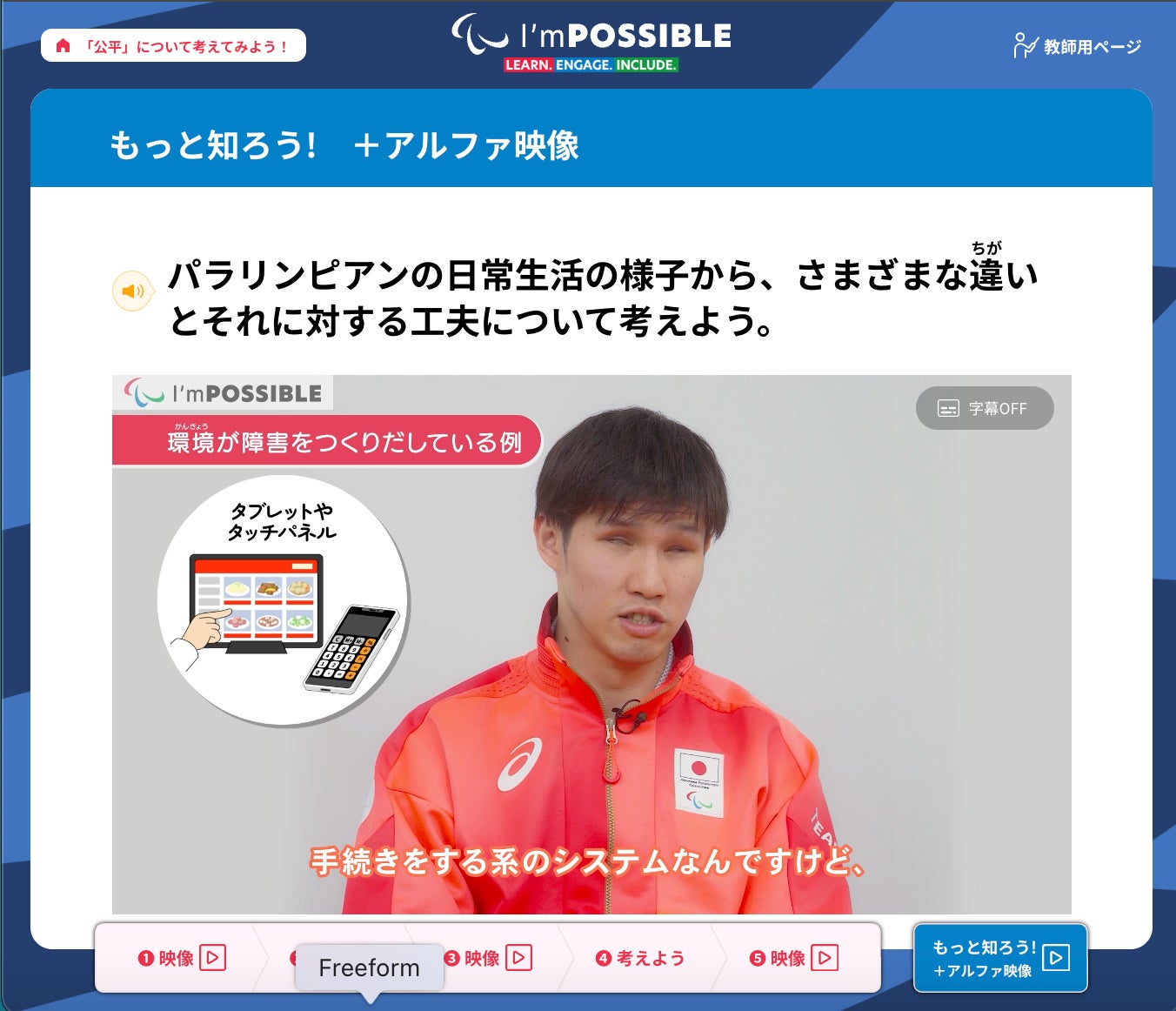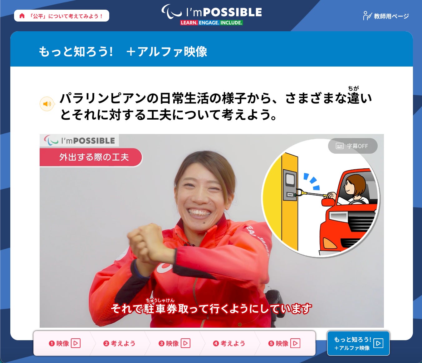 +アルファ映像では、倉橋香衣選手(パリ2024パラリンピック金メダリスト)のインタビューを通じ、公平について考察をさらに深めることができます。