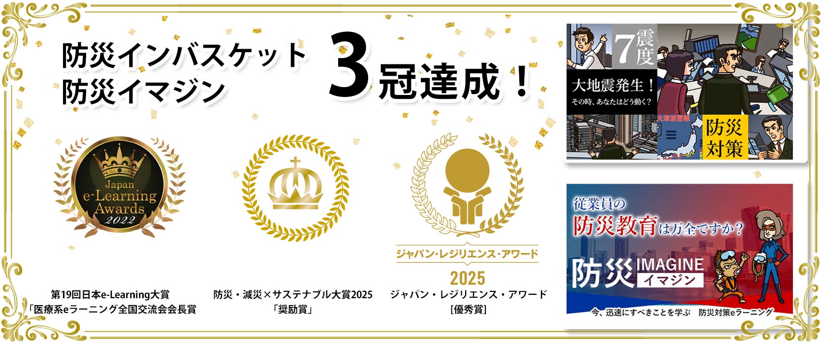 今回の受賞は、第19回日本e-Learning大賞「医療系eラーニング全国交流会会長賞(受賞コンテンツ:防災インバスケット)」および防災・減災×サステナブル大賞2025「奨励賞」に続き、3度目の受賞となり、当社の防災教育コンテンツが企業のリスクマネジメントにおいて高く評価されていることを裏付ける結果となりました。