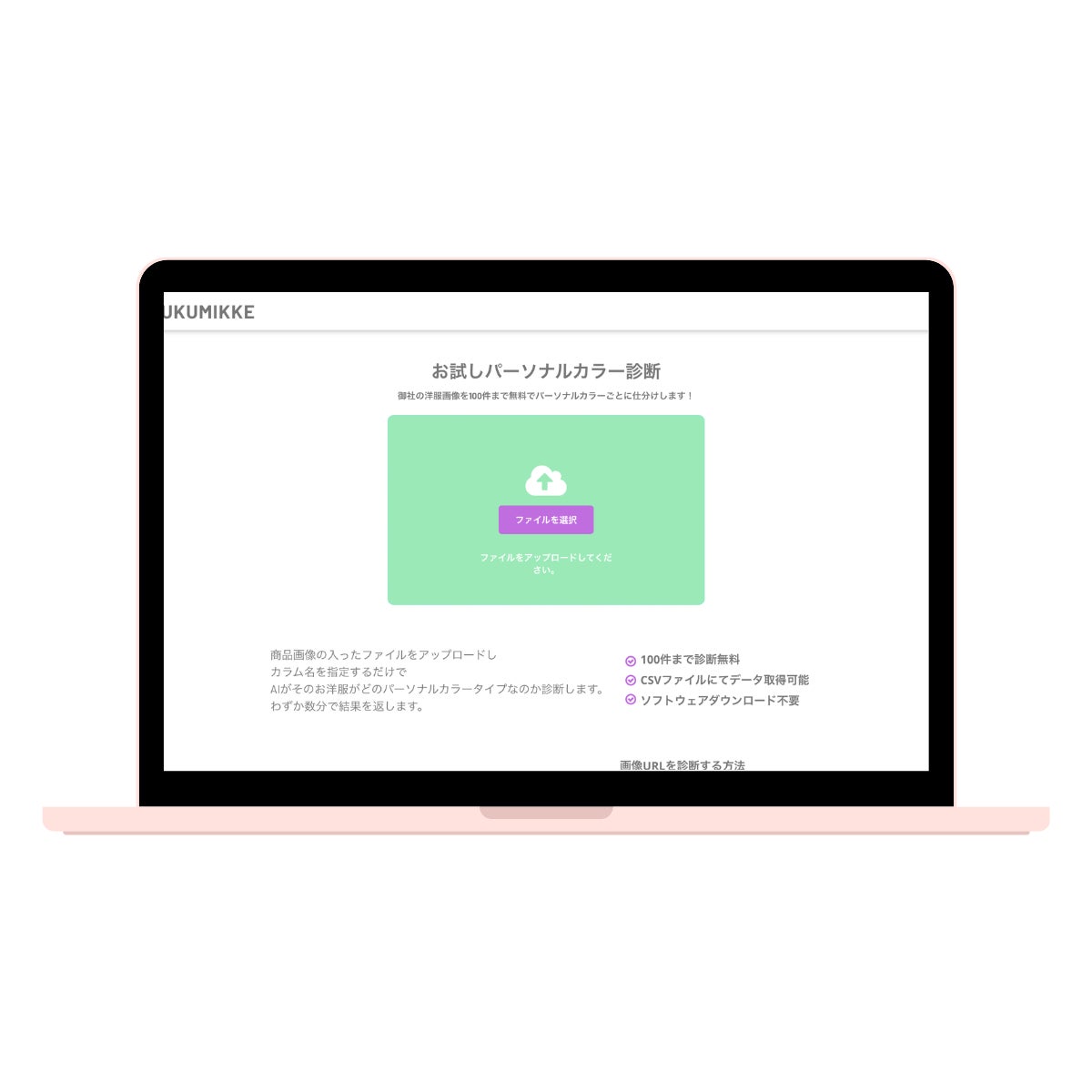 骨格・パーソナルカラー診断を行い、結果をCSVファイルにてお渡しするサービスも提供しています。