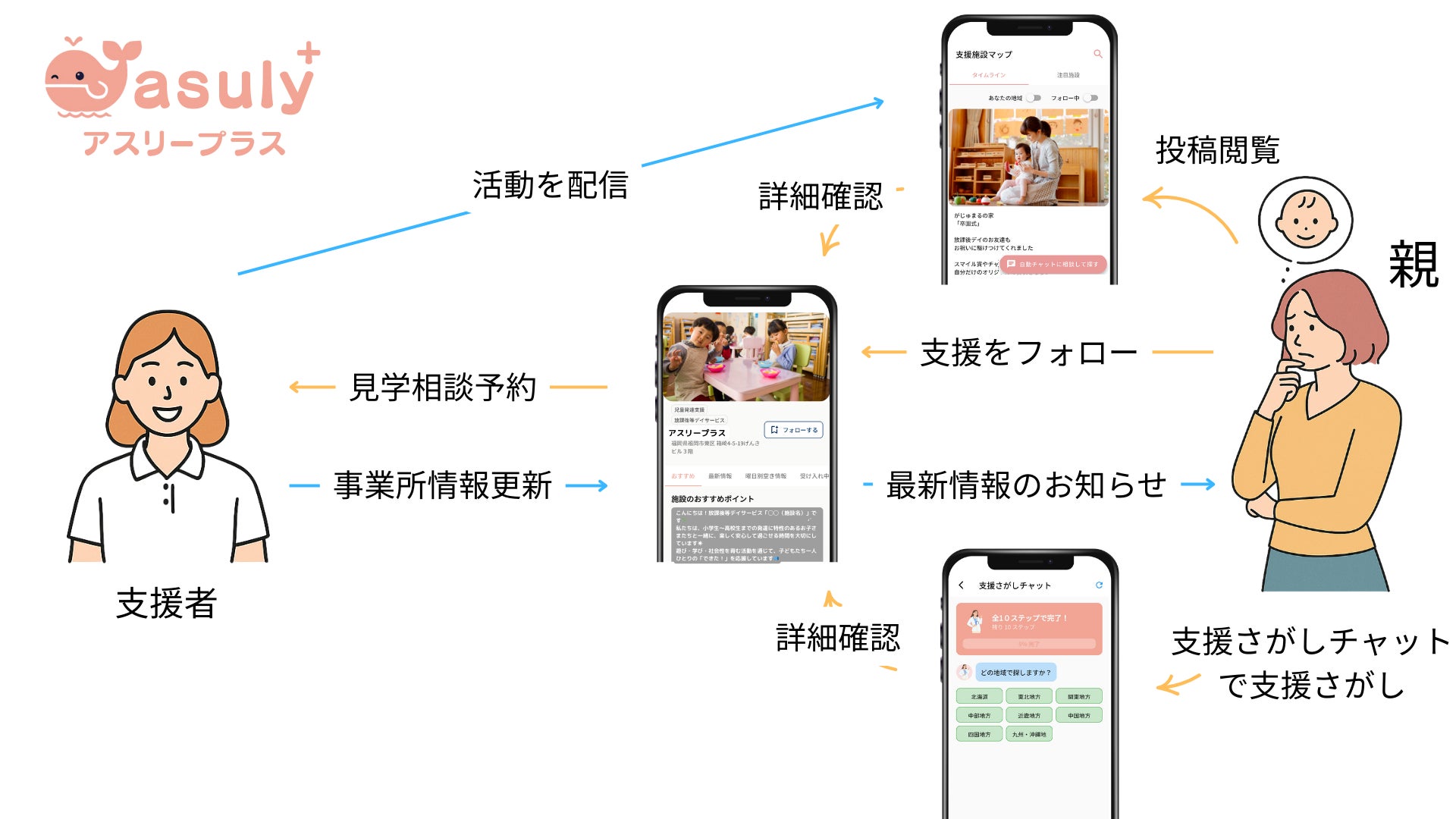 このように“親”と“支援”の間に横たわる分断を、つなぎなおすアプリです。