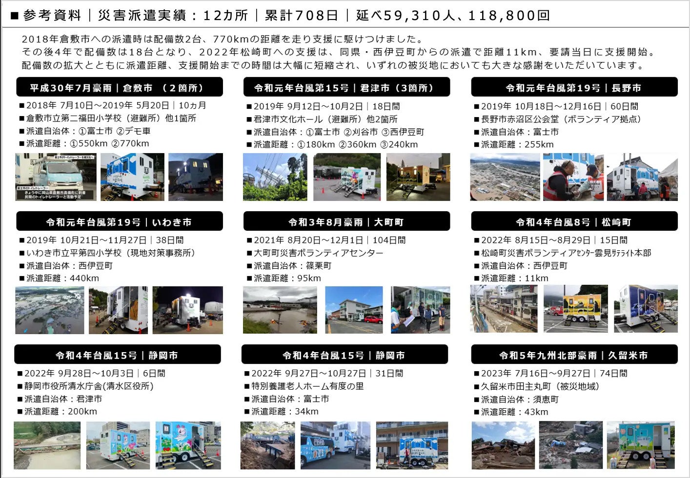 災害時には⾃分の⾃治体だけじゃなく、被災地に積極的に⽀援に⾏く仕組みになっています。まさにフェーズフリー&シェアリングエコノミーのネットワークなのです。そのため、費⽤の⼀部をクラウドファンディングで募集、全国の皆さんにも参加していただいています。応援よろしくお願いします。