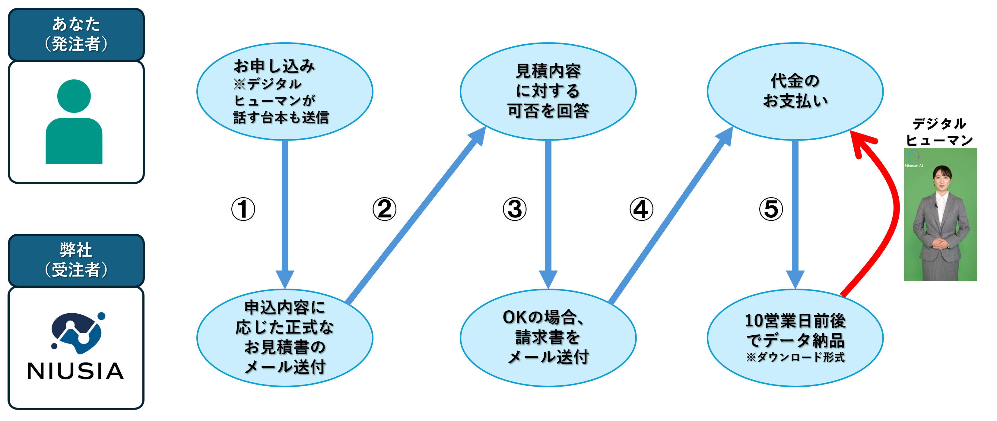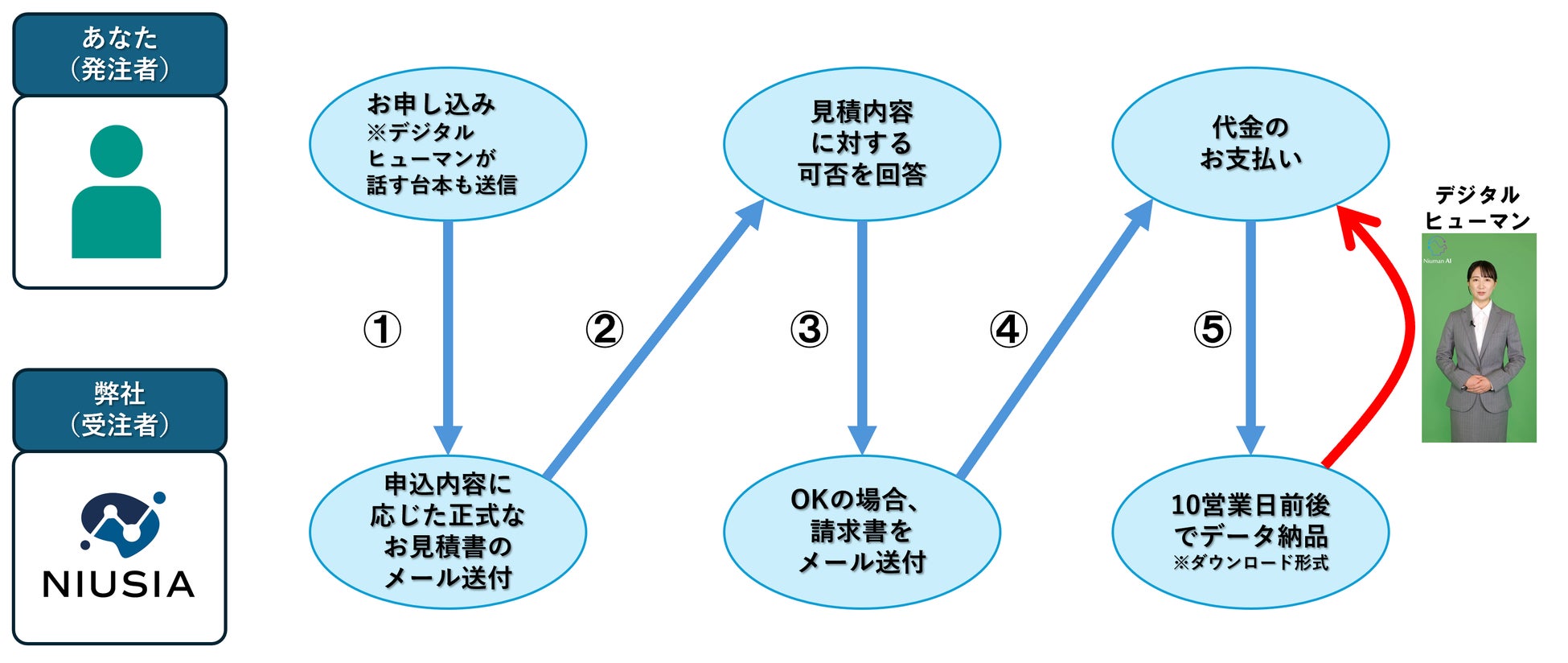 迅速な対応:緊急時や即時対応が求められる場面でも、AIデジタルヒューマンを迅速に(10営業日前後で)生成・展開でき、柔軟な対応が可能です。
