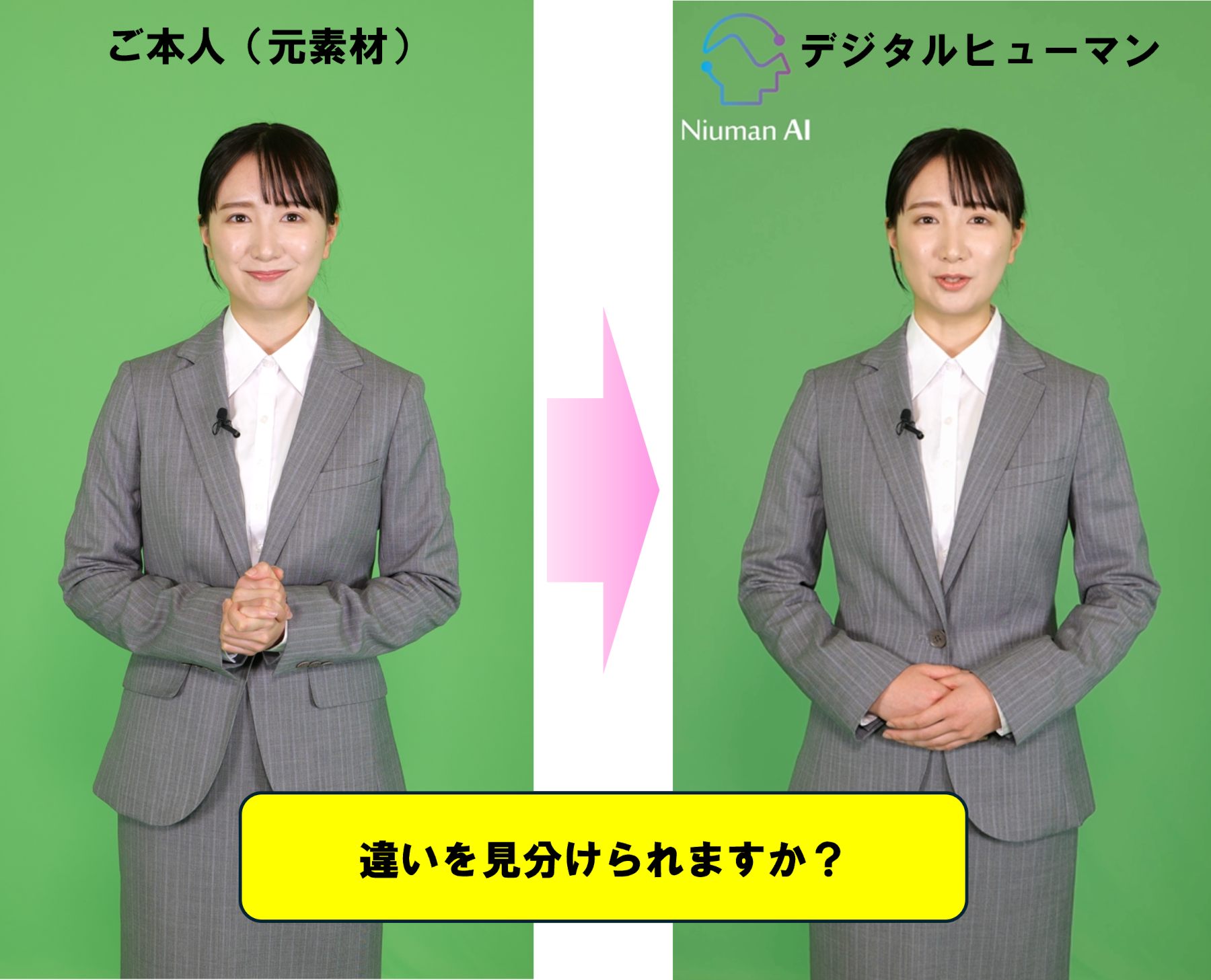※見分けがつかないレベルで、デジタルヒューマン化することができます。