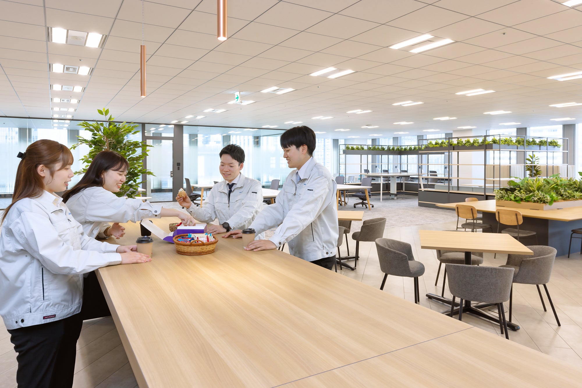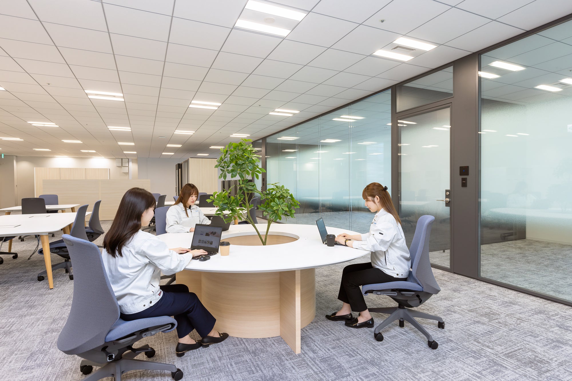 当社は本社機能をこれまでの新横浜から、横浜みなとみらいエリアの横浜コネクトスクエア(神奈川県横浜市西区みなとみらい三丁目3番3号)に移転しました。新本社は、若手社員の意見を取り入れ、「笑顔」をテーマに多様な働き方への対応や、その日の気分・業務内容に合わせたワークスペースなど自由に選べる環境を整備。フロアを壁で仕切らずひとつの部屋とすることで、社員同士のリアル交流・コミュニケーションの最大化を図ります。