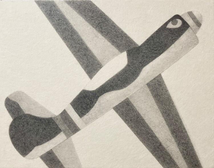 作品「ヒコーキ野郎」は、強い意志を持つ瞳を持ち、固い金属の塊というよりトビウオのような生命力が伝わります。ガーディアンとしての「ヒコーキ野郎」は、物のこわばった不変性をこわし「発展と挑戦」の歴史の記憶のガーディアンとして新たな文脈を生み出します。