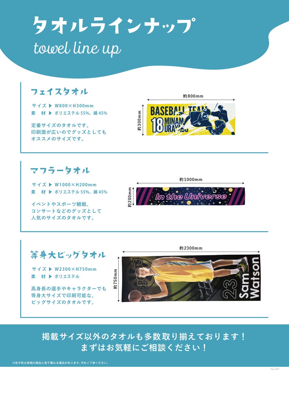 掲載サイズ以外のタオルも多数取り揃えております!