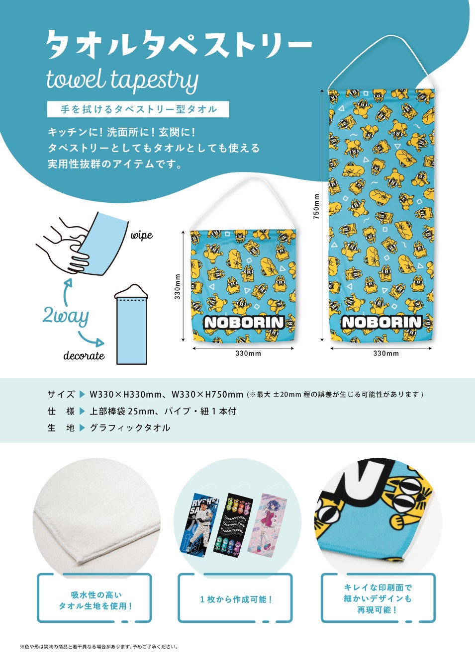 タペストリーとしてもタオルとしても使える実用性抜群のアイテムです。