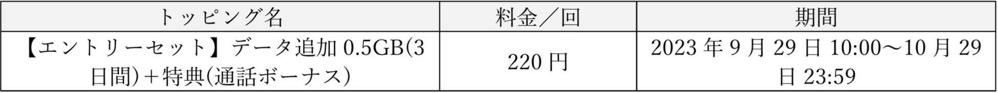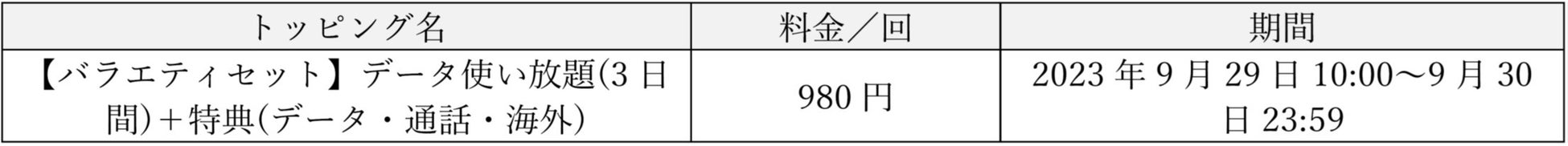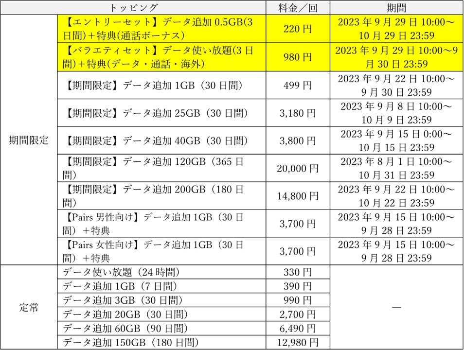 (参考)データトッピング一覧(2023年9月29日時点)
