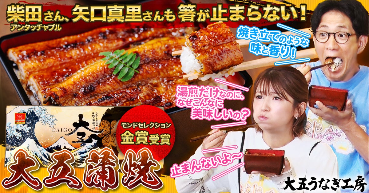 放送を記念して大五うなぎ工房本店では、期間限定セールを開催中です。「大五蒲焼」を期間限定【20%オフ】でお求め頂けます。ぜひこの機会に、アンタッチャブル柴田さん、矢口真里さんが大絶賛した蒲焼をぜひご賞味ください!
