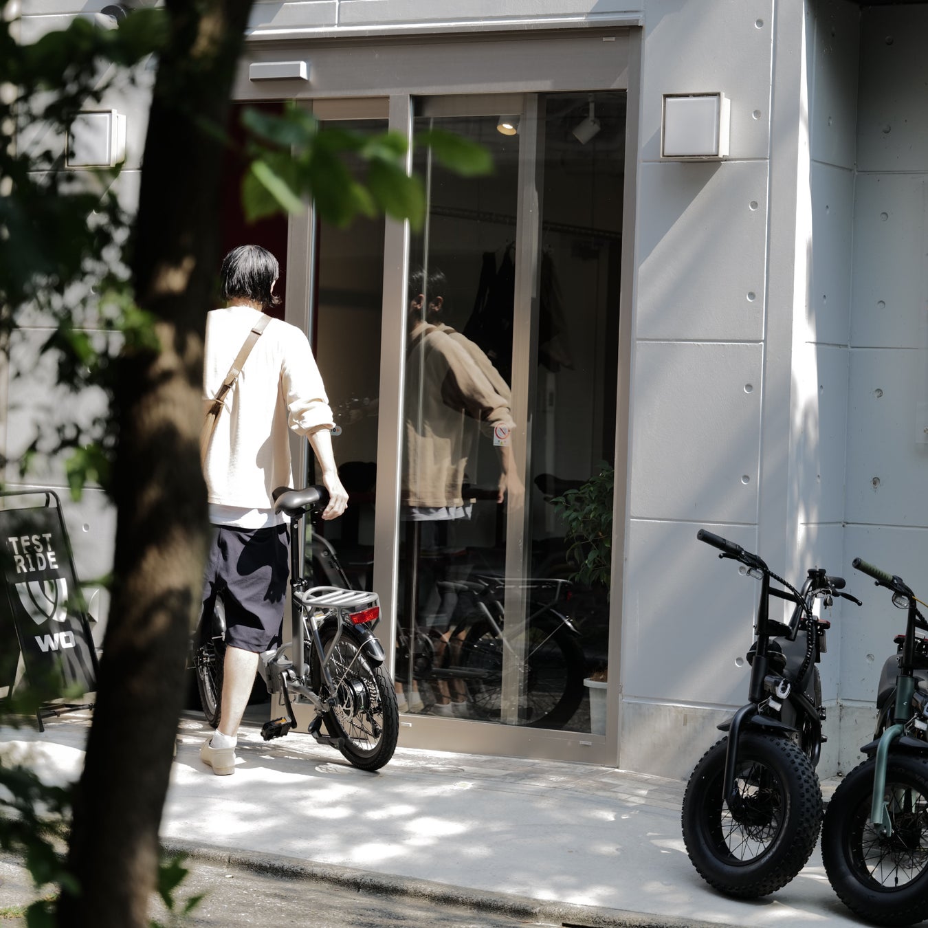 WOは電動バイク等の正しい知識を広め、お客様により満足してご利用をいただく為に、中目黒で旗艦店を構えております。旗艦店では車両の整備等を受けられるほか、初めて電動バイクを購入される方に向けては、交通ルールや乗り方などを丁寧にご案内させていただきます。また、デザインにこだわりたい方にはカスタムオーダーによる自分だけの1台をつくることもできます。