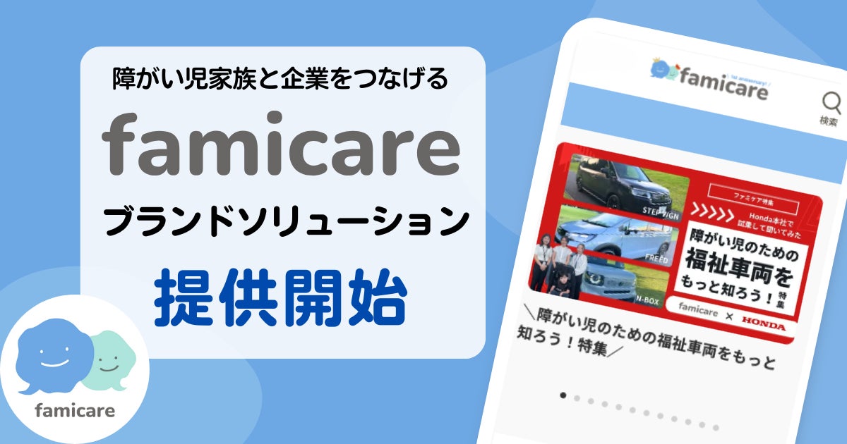 ファミケア、疾患・障がい児家族とサービス・商品を繋げる企業向けサービス「ブランドソリューション」を提供開始