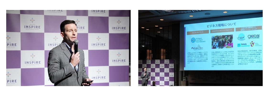 プレスカンファレンスでは、CMO のマイケル・ジェンセンが来日し登壇。世界的にも人気が高まるK-カルチャーのトレンドや、25年以上にわたって北米にて世界的な統合型リゾートの開発・運営を手がけてきたモヒガンが持つノウハウに触れながら、インスパイアのビジネス戦略やコンセプト、施設の詳細についてお話しました。