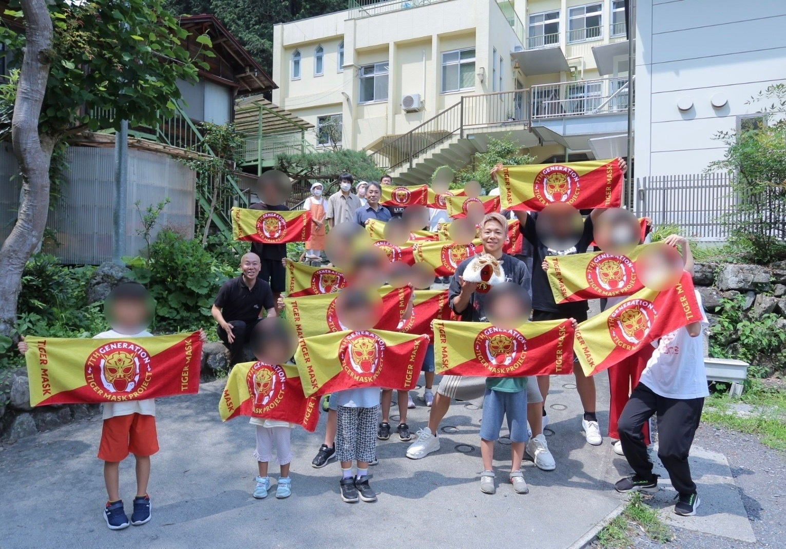 お別れの際には7代目タイガーマスクタオルをみんなで掲げて記念撮影。