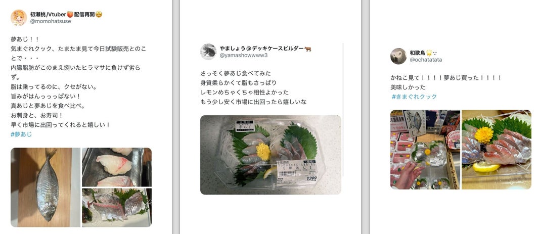 「夢あじ」のテスト販売に際し、さかなドリーム様よりお声がけいただき、サカナバッカとして新たな水産業界の取り組みに参加させていただけることを大変光栄に存じます。持続可能な魚食文化の発展に貢献するため、より多くの皆様に「夢あじ」をお楽しみいただけることを願っております。