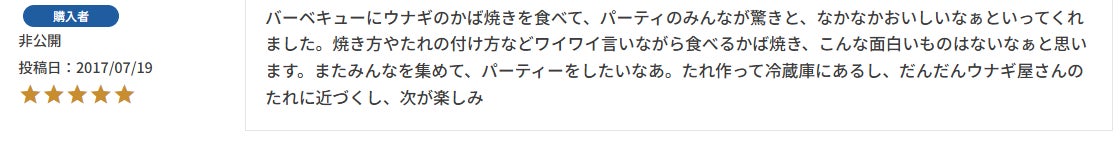 そしてBBQといえば、お肉や野菜が定番ですが、そこに“うなぎ”を持っていくと、いつもと違う驚きと喜びが!『おおっ!うなぎだ!』と歓声が上がり、場が一気に盛り上がります。贅沢で特別な一品が、仲間とのBBQをさらに楽しい時間に変えてくれることでしょう!