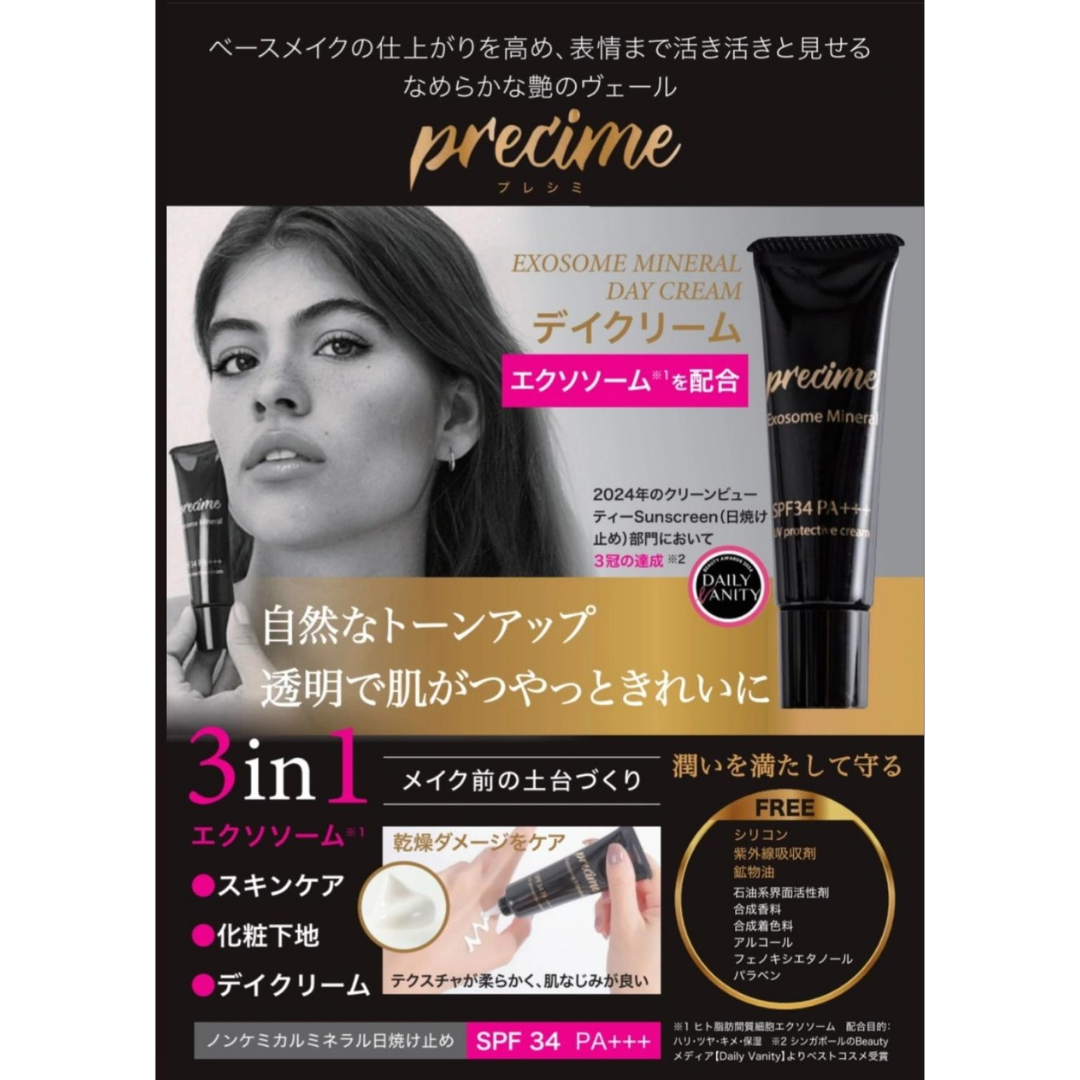 イノベーティブクリーンビューティー【PRECIME(プレシミ)】から、「Exosome Mineral UV Protective Cream SPF34PA+++」がシンガポールNo.1Beautyメディア Daily Vanity より2024年クリーンビューティーSunscreen(日焼け止め)3冠でのべストコスメ受賞をいたしました。 「編集長・専門家・インフルエンサーのチョイス」