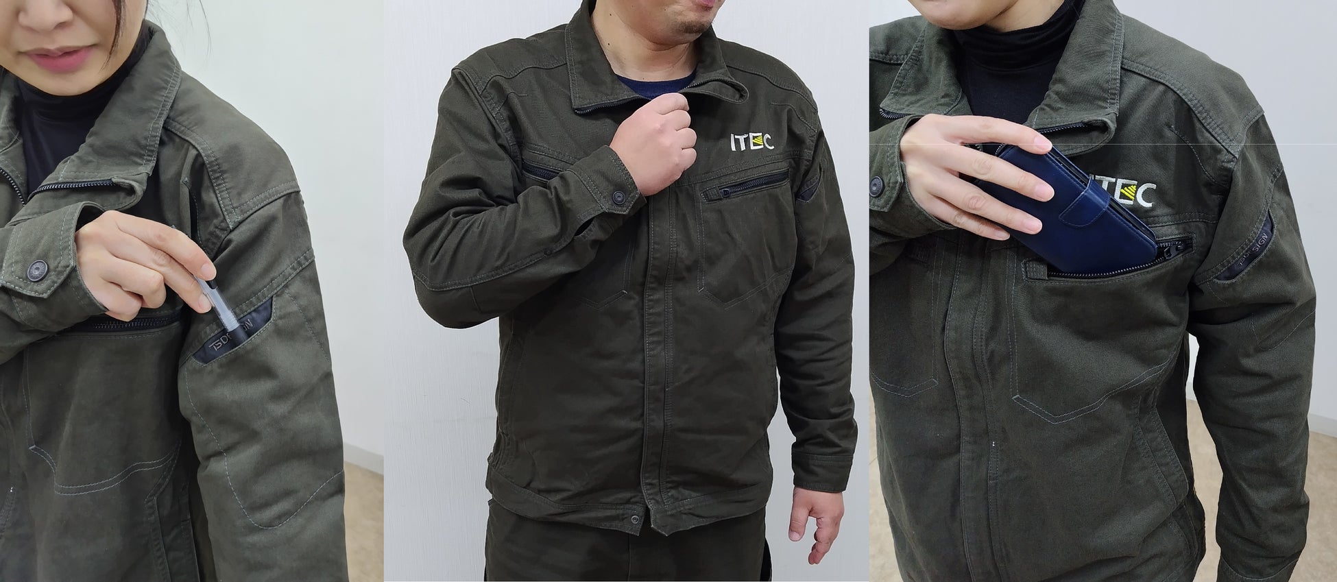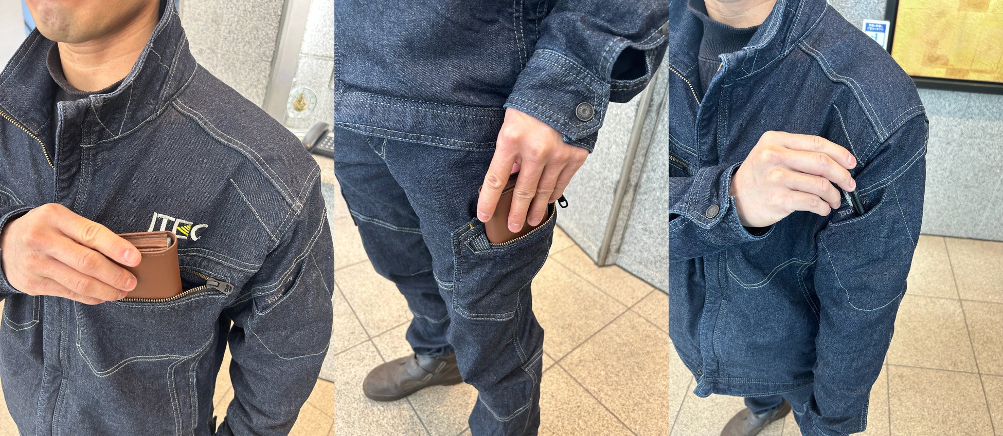 ジャケット、パンツ共にポケットの数が増え、伝票やペン、電子機器等を使用する様々業務へ対応し、業務効率化を図りました。